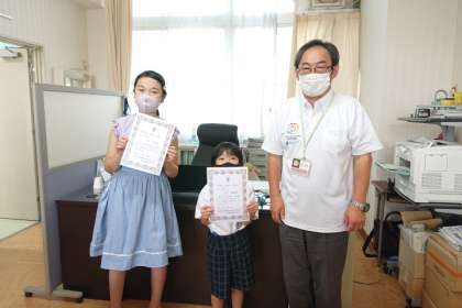 まず最初に、昨年度の大阪市小学校児童絵画・版画展で受賞した子どもたちに、校長から表彰状を渡しました。