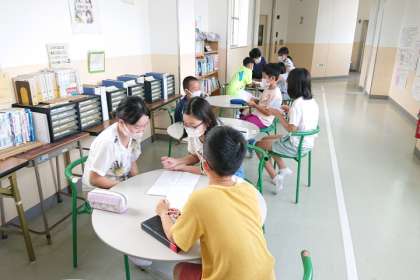 前期児童会の役をしている子どもたちが、打合せをしています。