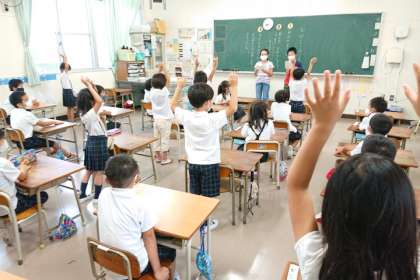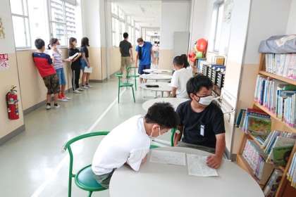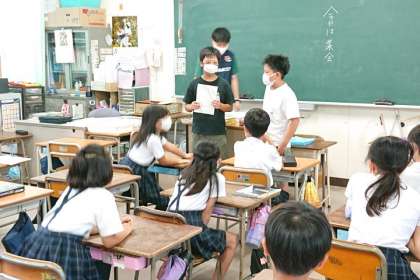 チャイムが鳴ったら1年、3年、6年の教室に分かれてゲーム開始です。