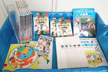 いま、東京パラリンピックが開かれていますが、図書室前では、オリンピック、パラリンピックについての本を手に取って読むことができるように置いています。