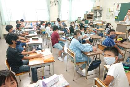 教室に入るとさっそく「こんにちは」の元気な声が聞こえてきました。