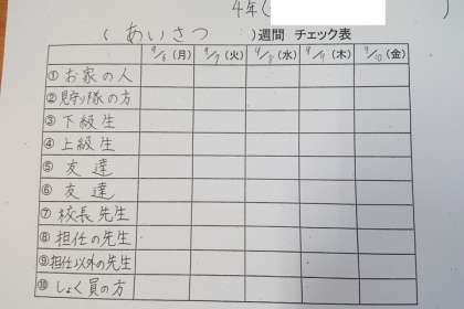 4年生のクラスでは、来週から1週間、チェックカードを使ってあいさつ運動に取り組みます。