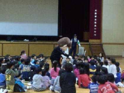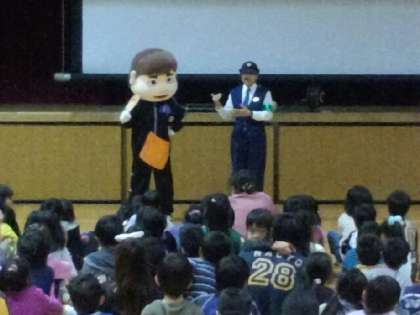 今日は、西淀川警察署から出前講座に来ていただき、誘拐事件に巻き込まれないよう防犯教室が開催されました。