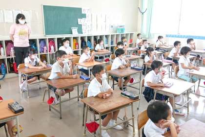 1年生の教室では、どんなことがいじめになるのか、みんなで考えていました。