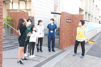自分から「あいさつ運動」をしたいと言って、3人の子どもたちが正門にやってきました。