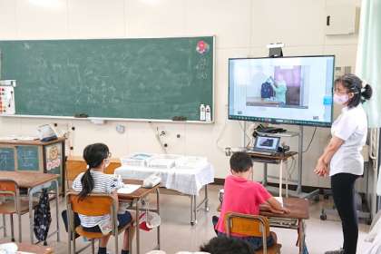 C−NET(ネイティブ)の先生に来ていただき、英語活動の学習をしました。