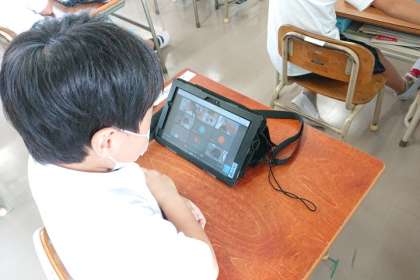 タブレットを使って「双方向通信」の練習をしました。