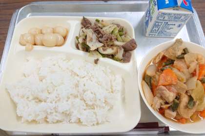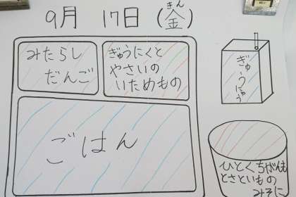 今日は、「お月見」にちなんだ行事献立(がんも、さといも、みたらしだんご)です。