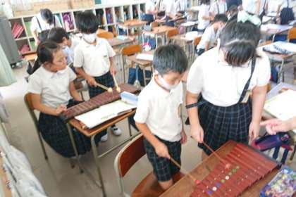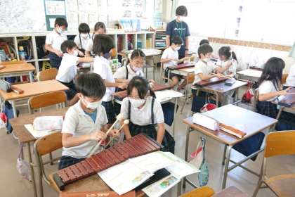音楽科の時間に、木琴を使って「ゆかいな木きん」の曲を練習しました。