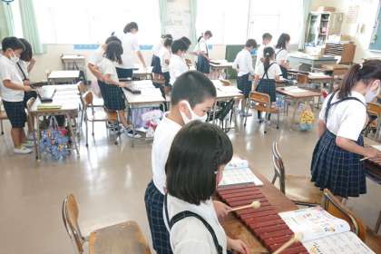 音楽科の時間は、「山のポルカ」を木琴で練習しました。