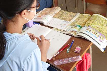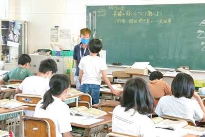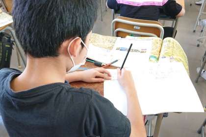 社会科の時間には、長篠の戦いのようすについて教科書や資料集から調べ、ノートにまとめました。