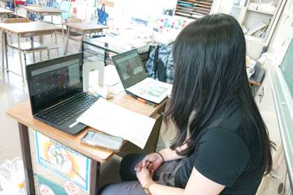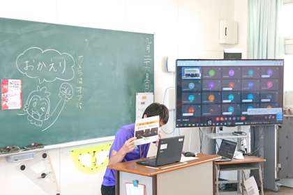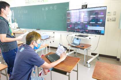 子どもたちが帰宅した後、各家庭と学校を結んでオンラインミーティングの試行実施を行いました。