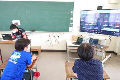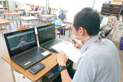 子どもたちが帰宅した後、各家庭と学校を結んでオンラインミーティングの試行実施を行いました。