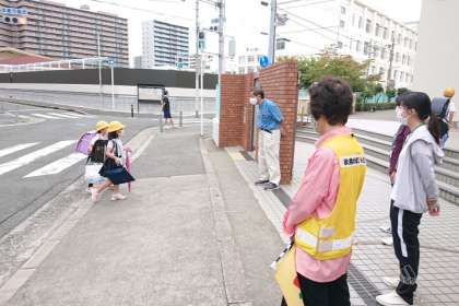 休日にもかかわらず、今日も地域の見守り隊の方が立ってくださいました。