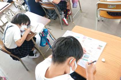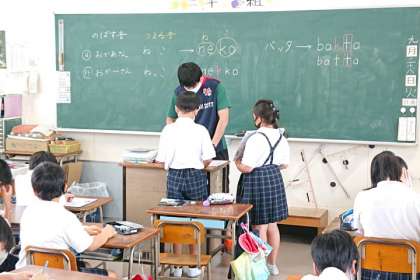 「nekko」「batta」など、つまる音の表記の仕方を練習しています。