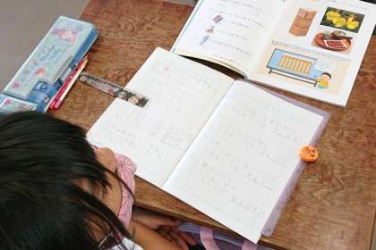 教室にある扇風機の羽の数・・・5枚×4台→5×4