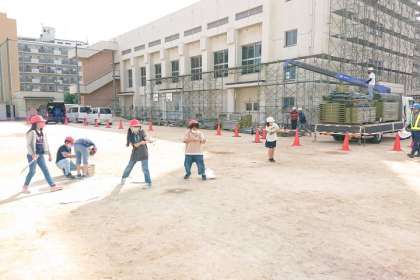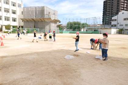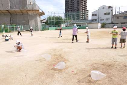 ビニル袋をふくらませて的にしましたが、風で的が動いて大変!
