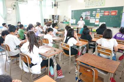 大阪市教育委員会の歯科衛生士の先生に来ていただき、「歯と口の健康教室」を行いました。