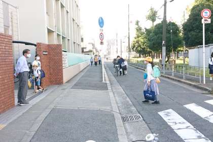 今のところ、保護者や地域の皆さまのご協力で、子どもたちは安全に、おおむね少人数で分散して登校しています。