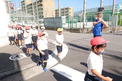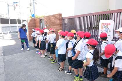校外での歩き方を確認しながら、学校周辺を1周して、無事学校に戻ることができました。