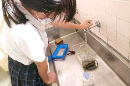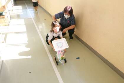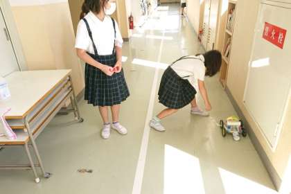 低学年の子どもたちが、ザリガニのお世話をしたり、自分が作った動くおもちゃで遊んだりしていました。