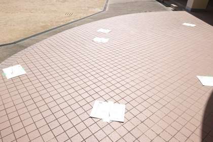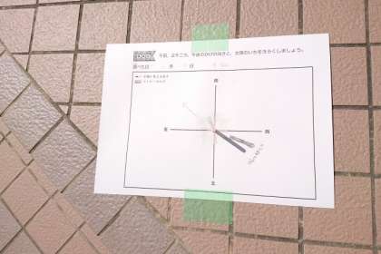 何かと思って、よく見てみると、3年生が理科「太陽の動き」の実験をしているようです。