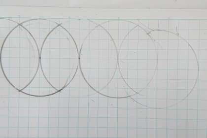 コンパスを使って、子どもたちがいろいろなもようを描きました。