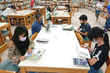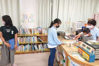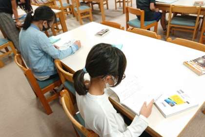 子どもたちが、自分で本を選んで静かに読んでいます。