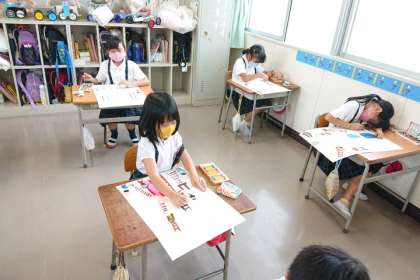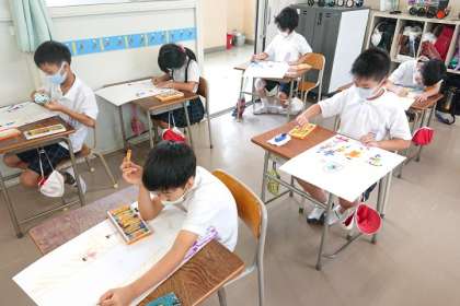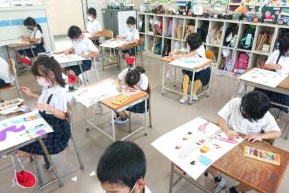 図画工作科の時間は、「大きな木」の絵を描いています。
