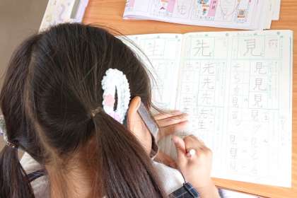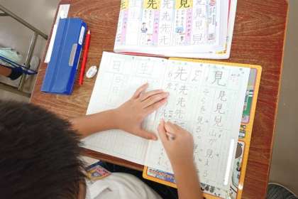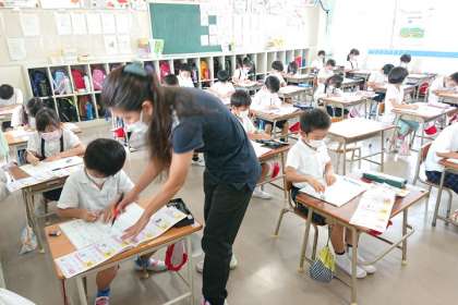 1年生が進出漢字の「見」「先」の漢字を練習しています。