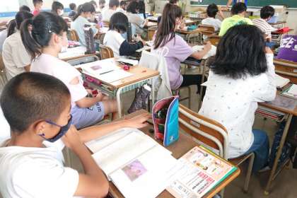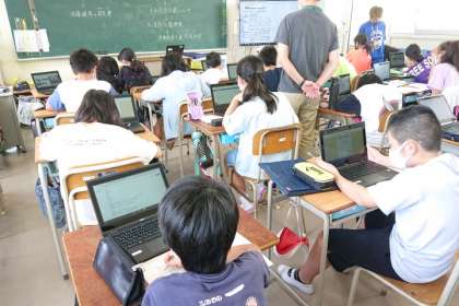 今日は、教科書の教材文「ヒロシマのうた」を読んだあと、1人1台PCを使って、広島に原子爆弾が落ちたときのようすや、原子爆弾の被害について調べました。