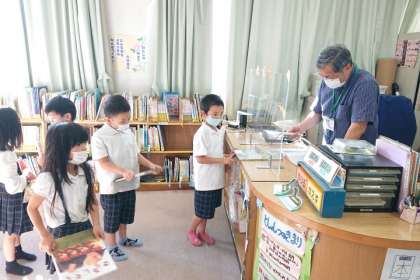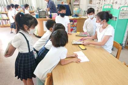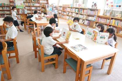 図書室で、自分が選んだ本を楽しそうに読んでいます。