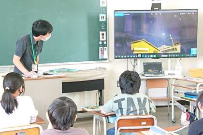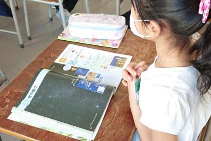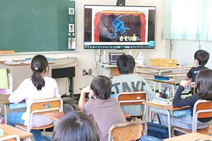 理科の時間は、星座の話を動画で見て学習した後、木星、土星、金星、夏の大三角など、実際に昨晩、本校教員が撮影した画像を見ながら、夜空に輝いている星について学習しました。