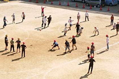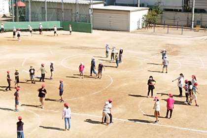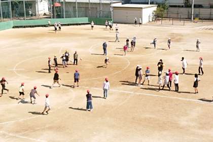 子どもたちが元気に外遊びしています。