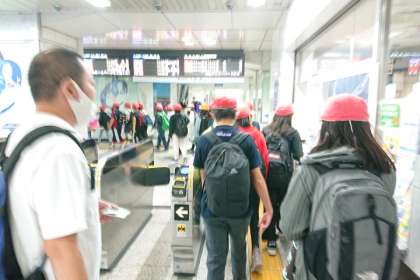 梅田で乗りかえます。
