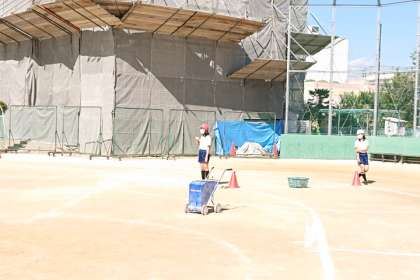 スタート→走る→お玉でピンポン玉を運ぶ走る→箱の中に入っている紙を1枚とり、書いている物を借りる→ゴール