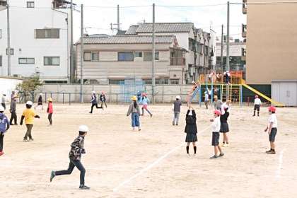 昨日、遠足でたっぷり遊んだ3年生や4年生も、たくさんの子どもたちが運動場に出て遊んでいます。