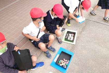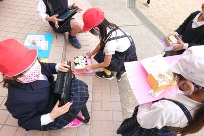 図画工作科で作った、紙ねん土のおべんとうを、タブレットを使って撮影しています。