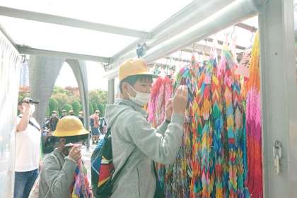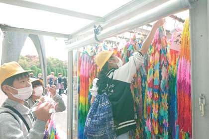 全校児童が平和への願いを込めて折った、1509羽の折り鶴を奉納しました。