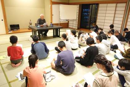 語り部の大越和郎さんから、「戦争も核兵器もない世界を!」をテーマに、原爆投下の被害や、平和の大切さについてのお話を聞いています。