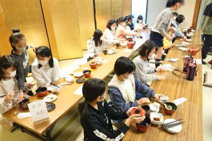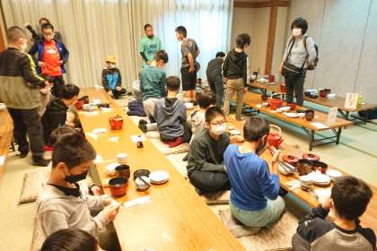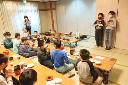 「ごちそうさま」のあいさつをして、食器の片付けをしています。