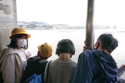 フェリー船内にて。