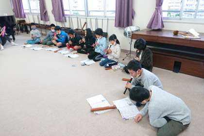 楽器ごとに分かれて、練習しています。