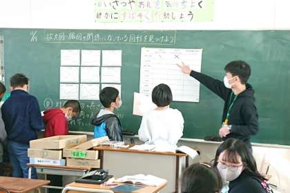 算数科の時間は、「拡大図と縮図」についての学習をしています。