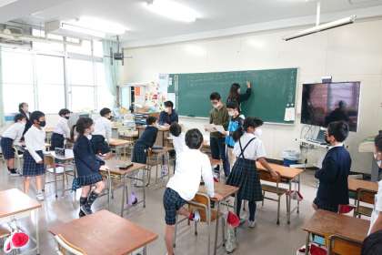 最後に、みんなで手拍子をしながらリズムに乗って「バナナと言ったら黄色、黄色と言ったら・・・」とつないだ言葉を読んでいました。