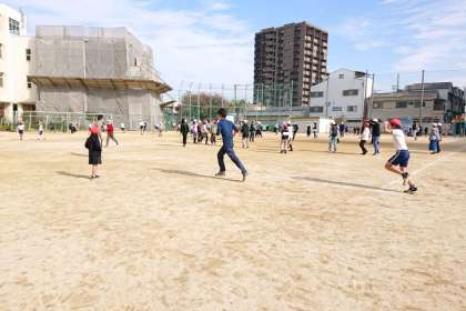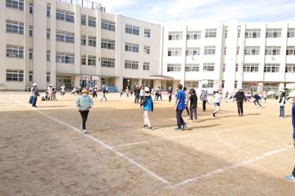 日なたはぽかぽかと暖かく、たくさんの子どもたちが運動場で遊んでいます。