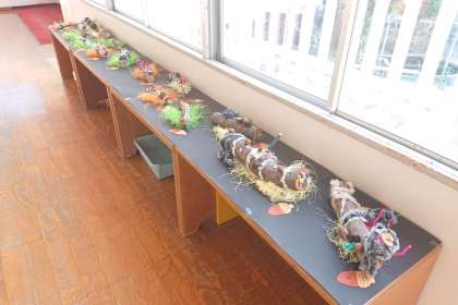 園児たちの思いや工夫、がんばりがたくさん詰まった作品が展示されていました。