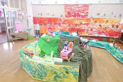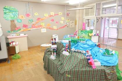 園児たちの思いや工夫、がんばりがたくさん詰まった作品が展示されていました。