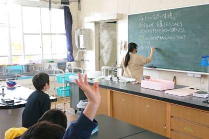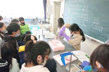 理科の時間は、とじこめた空気をあたためるとどうなるか、実験で確かめました。