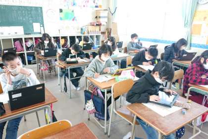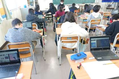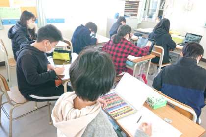 今日は、1人1台PCでデザインを調べながら、下絵を描いています。